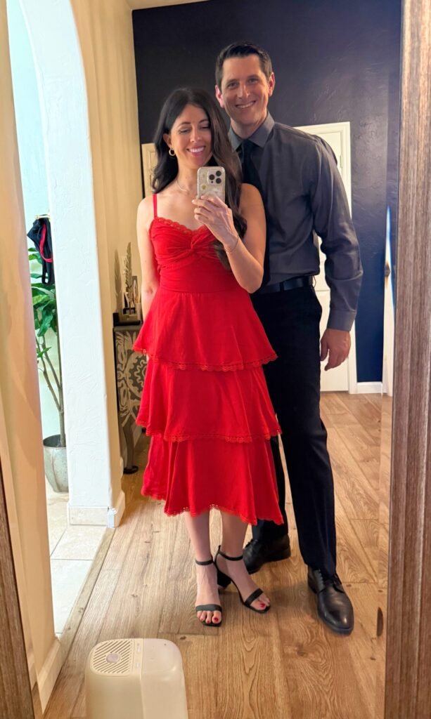 (The dress is from RTR Unlimited and reminds me of the dancing emoji; I rented it previously and loved it so I decided to do it again! This link gives you 50% off your first month of membership. I love it for vacations, events, and travel.)