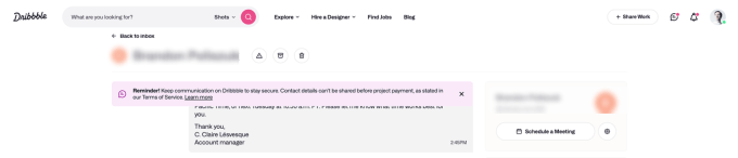 In a joint email in March with DRIBBLE about 750,000 accredited designers – which means those who declare to communicate with others on the platform – the company said it no longer allows designers to share their contact information with potential customers even after their customer sent the payment through its platform.