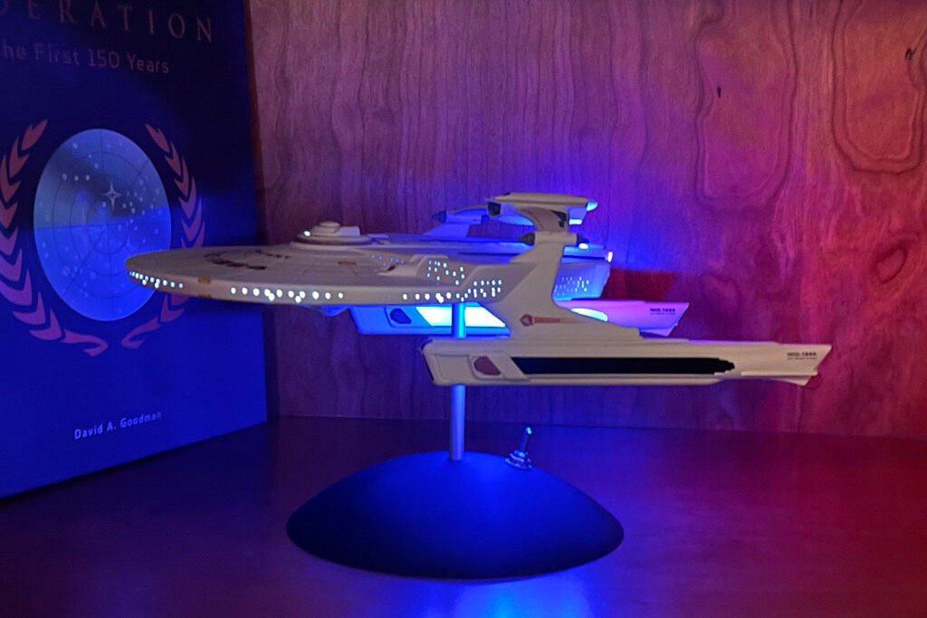 These days, you can even find some great, affordable replicas of props. I bought a phaser for my 7-year-old, and he plays with it non-stop. The biggest producer of Starship replicas, though, Eagle Moss, recently went out of business.