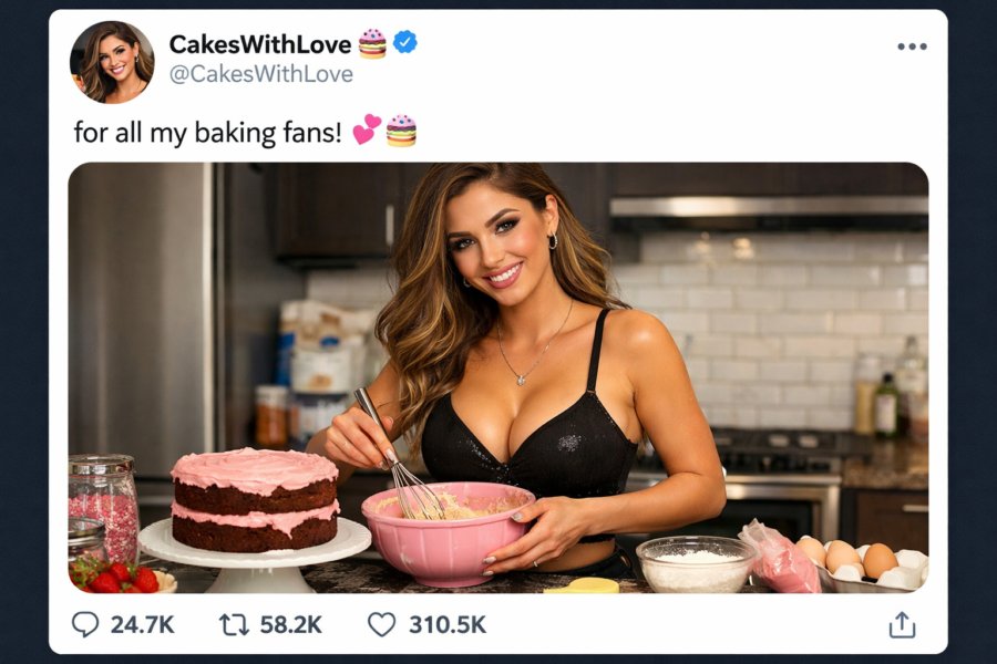 Now, the Internet is filled with posts from attractive women showing photos of themselves baking cakes and pretending that people are following them because they love pastries. This is a lie. They know it, we know it, everyone knows it. This fact makes it worse than the lie. It’s gaslighting.
