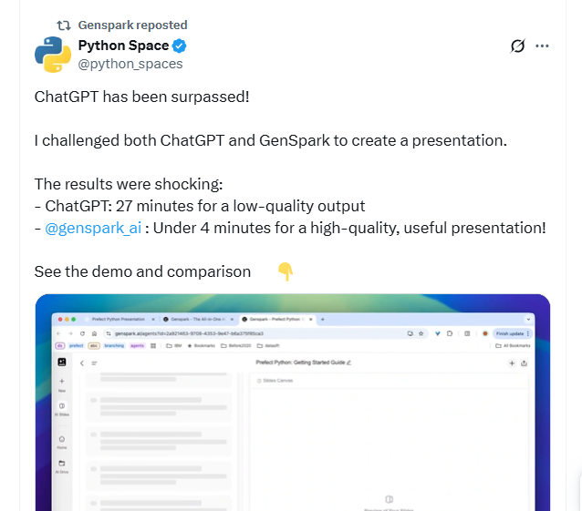As for the direction of coding, the goal of Genspark is to allow everyone to experience, even for non -programmers where the concept may be “very far”.