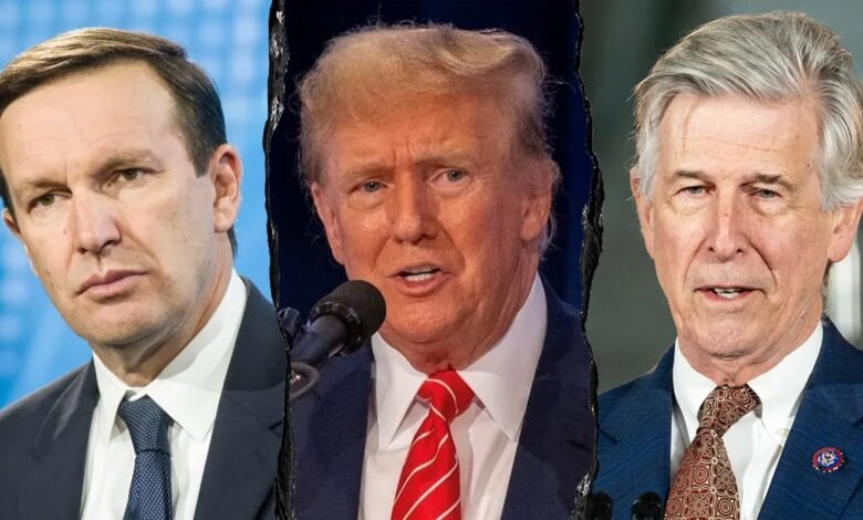 Sen. Chris Murphy, President Donald Trump and Rep. Don Beyer appear side by side. (Getty Images | Donald Trump 2024 campaign)