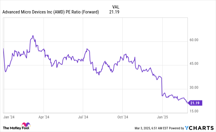 AMD got some individual fees for one time on its books over the past year, so using the price ratio to profits (P/E) does not give investors a lot of insight to the company. Instead, I will use the P/E forward, as these fees do not include once difficult to display. In this regard, the AMD evaluation decreased dramatically over the past year.